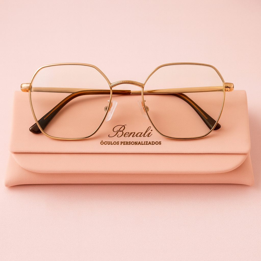 Além disso, os Óculos Benali vêm acompanhados de um estojo elegante na cor rosa, que não só protege seu acessório, mas também adiciona um charme extra ao seu dia a dia.